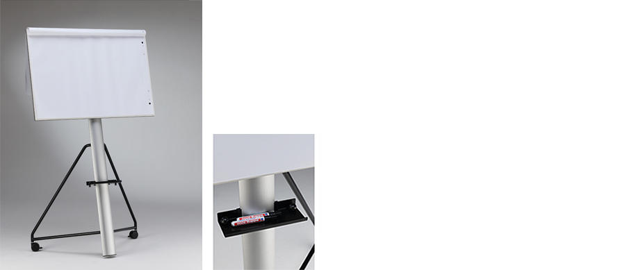Mit dem MindChart haben wir das alte Flipchart neu erfunden. Eine kurvengesteuerte Drehmechanik erlaubt das Arbeiten in Hoch- und Querformat bei gleichbleibender Höhe. Zusätzlich ist eine Gasdruckfeder zur Gesamthöhenverstellung integriert und eine Magnet-Kugelstifttechnik zur Papierhalterung.